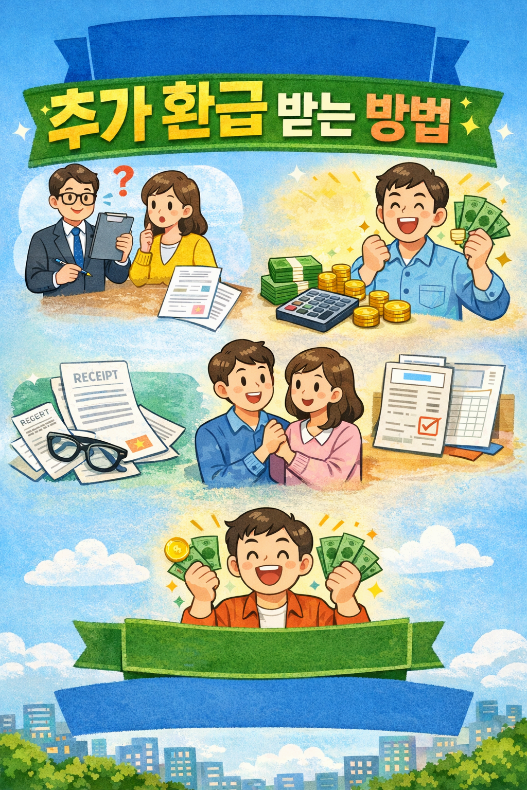 연말정산을 이미 끝냈는데도 “환급받을 돈이 더 있을 것 같은데?”라는 생각이 드는 경우가 많습니다.실제로 연말정산은 한 번에 끝나는 절차가 아니라, 사후 점검과 추가 환급이 가능한 구조입니다.특히 간소화 자료 누락, 공제 배분 실수, 서류 미제출 등의 이유로 환급금을 놓치는 사례가 매우 흔합니다.이 글에서는 연말정산 신고 후에도 추가로 환급받을 수 있는 현실적인 방법을 단계별로 정리합니다. 목차연말정산 후 추가 환급이 가능한 이유경정청구로 환급받는 방법과 주의사항간소화 서비스 누락 항목으로 환급받는 경우공제 배분과 신고 방식 수정으로 환급 늘리는 방법요약 표자주 묻는 질문 (FAQ)환급을 끝까지 챙기는 사람의 공통점1. 연말정산 후 추가 환급이 가능한 이유연말정산은 회사가 대신 신고해 주는 구조이지만, ..